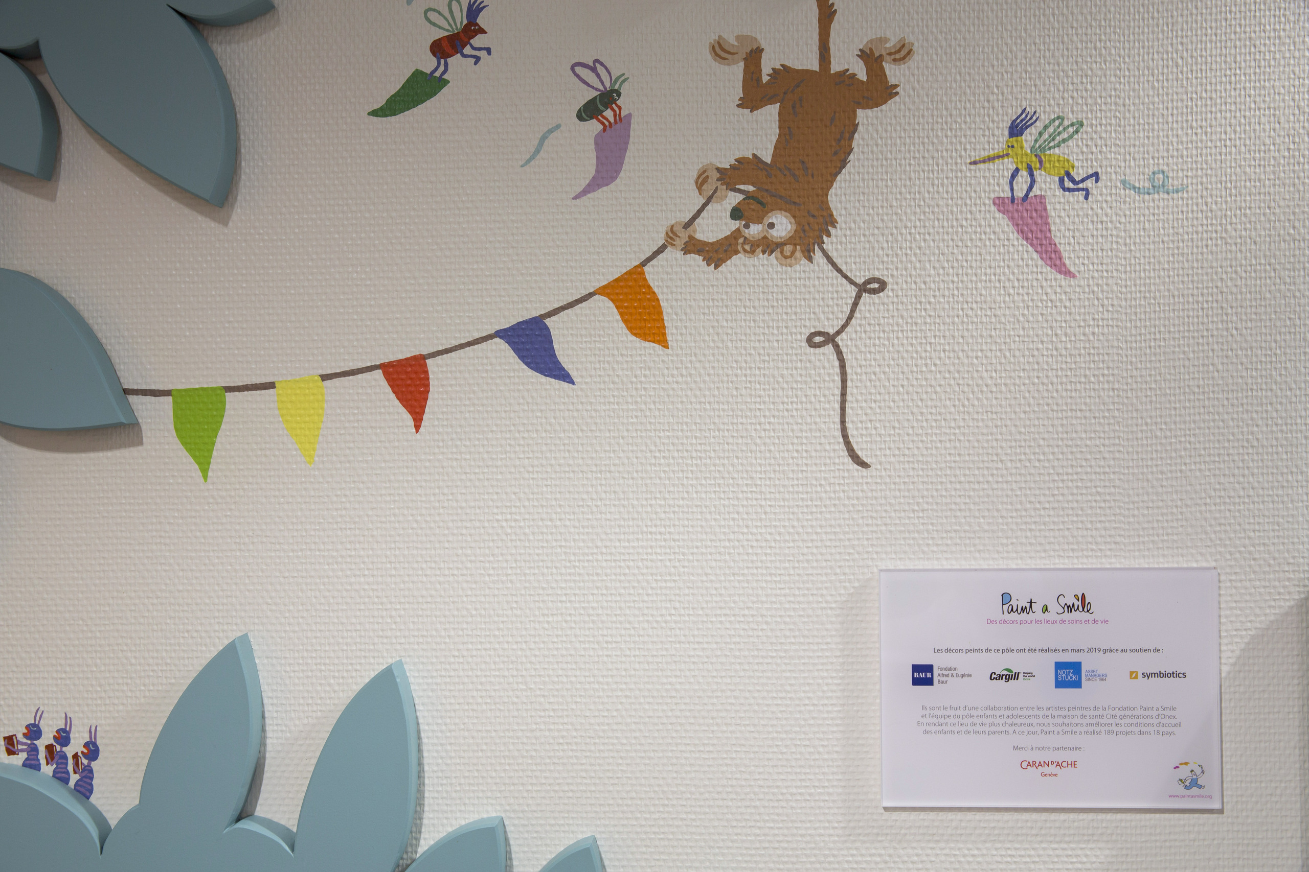 La Consultation ambulatoire d’Orbe reçoit les enfants et adolescents qui souffrent de difficultés psychiques, ainsi que leurs parents. Aucun détail n’est laissé au hasard par les artistes peintres de Paint a Smile. L’approche est étudiée en amont avec le corps médical puis le projet graphique validé entre tous les concernés avant la réalisation.