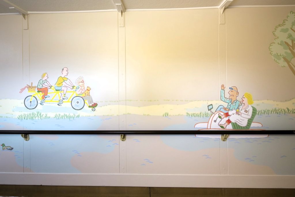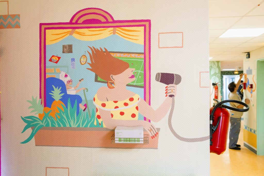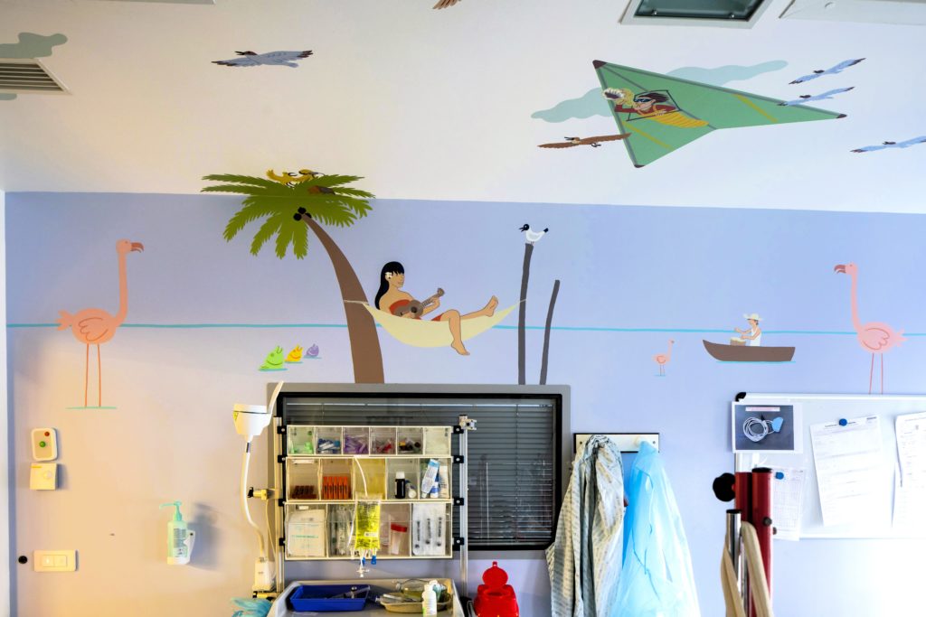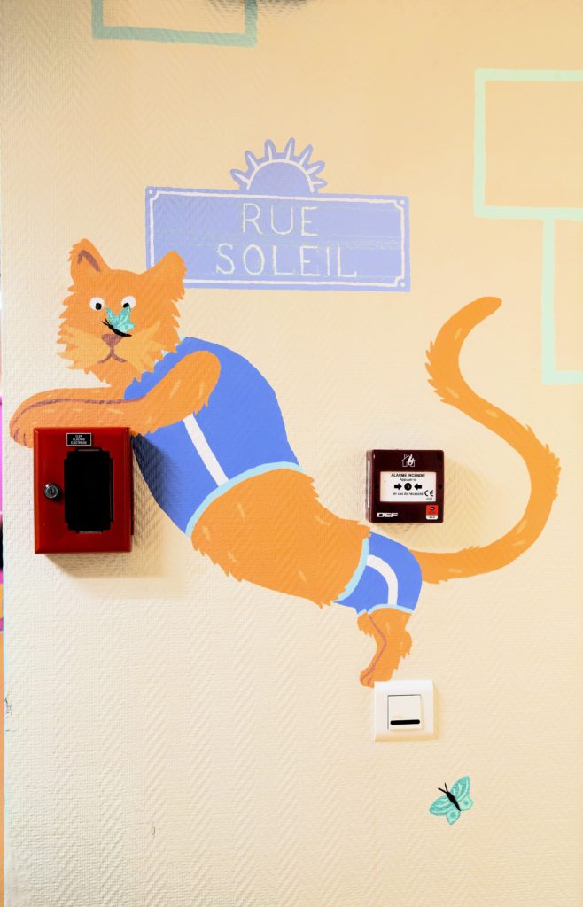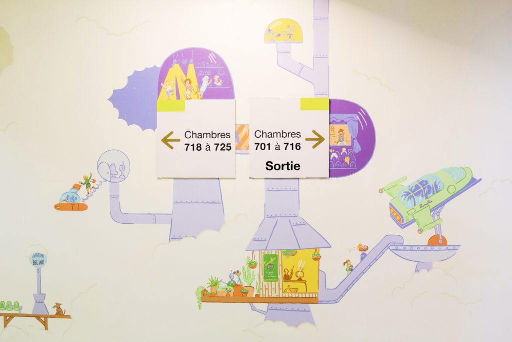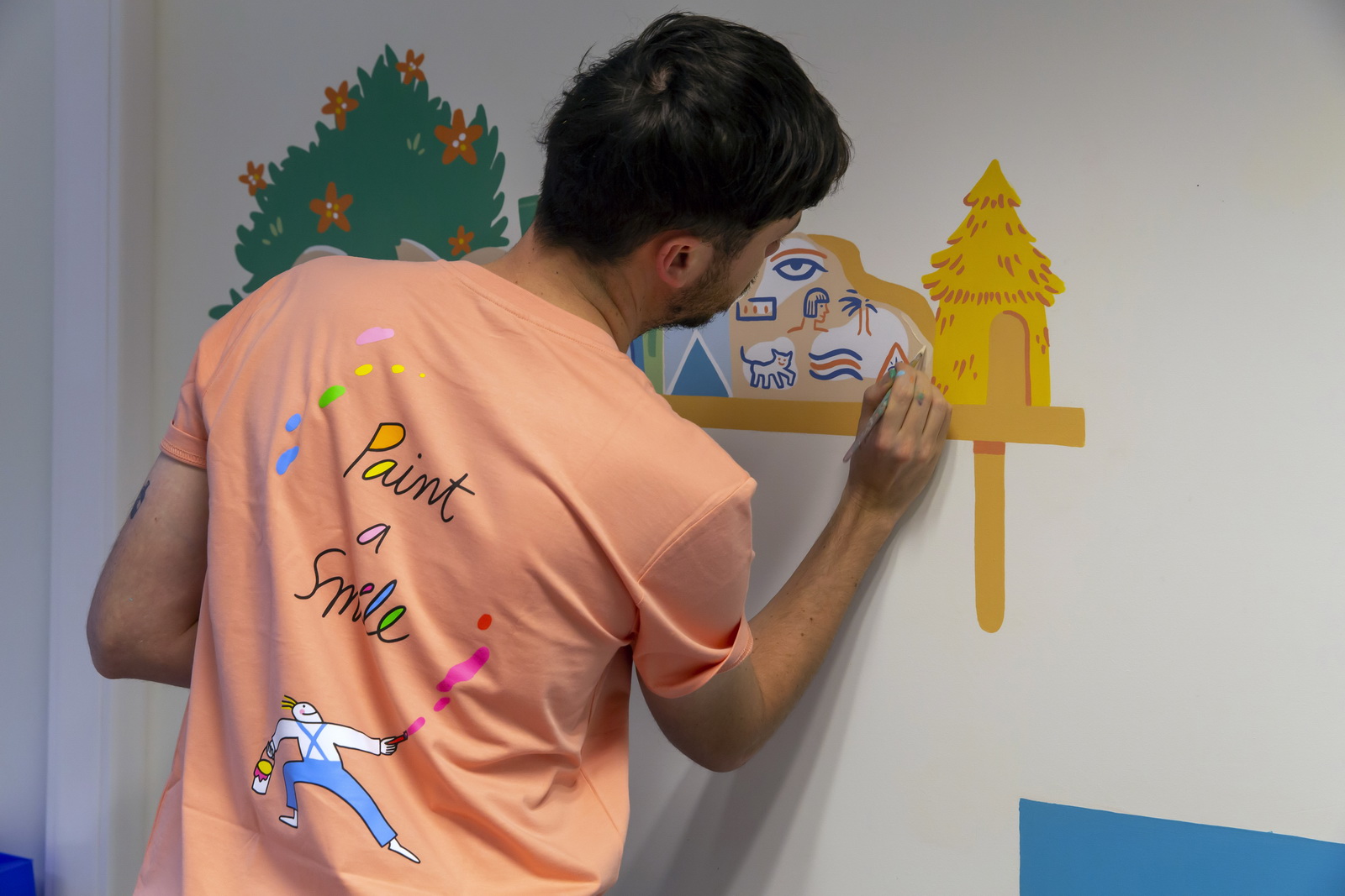 Paint a Smile transforme et égaie les lieux de soins médicalisés avec ses fresques aux couleurs adaptées. Les personnages et leurs univers, étudiés et créés sur mesure, ouvrent les fenêtres sur le monde imaginaire et l’extérieur.