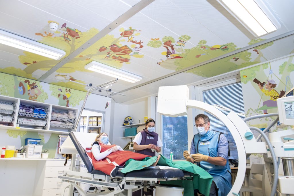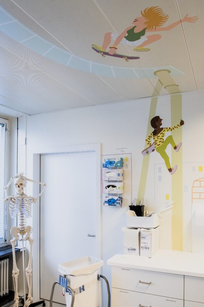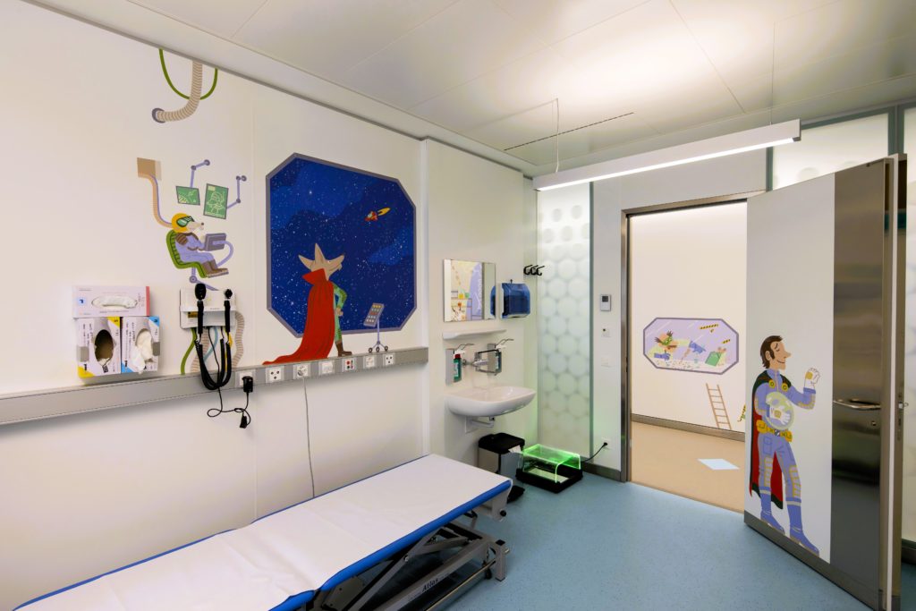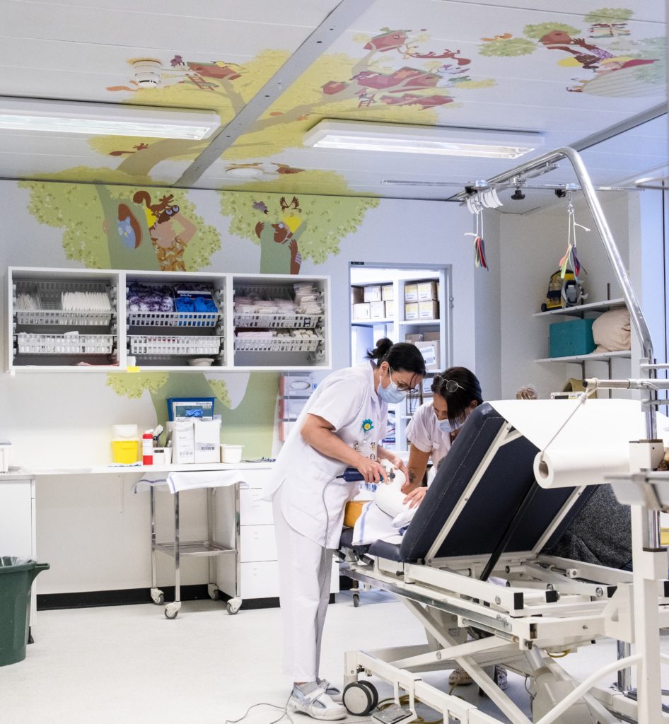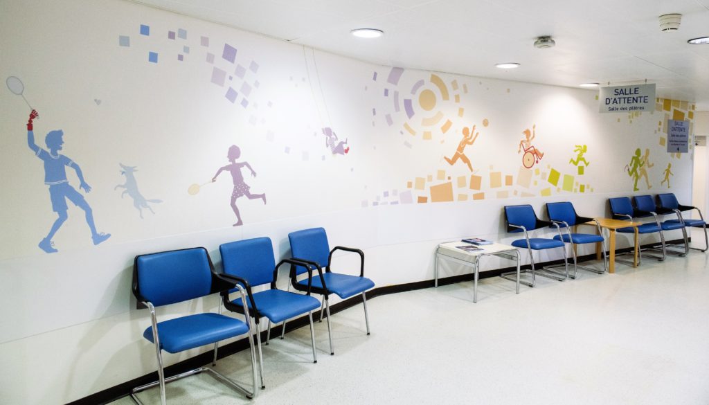 Le secteur des plâtres de l’Hôpital des enfants prend en charge chaque année plus de 5’000 jeunes patient(e)s. Afin d’améliorer leur confort et prise en charge, la rénovation complète de son secteur des plâtres a eu lieu en 2021. Une pièce dédiée à l’hypnose des enfants lors de la consultation s’ajoute aux deux salles de traitement. Décorés par la Fondation Paint a Smile, les nouveaux espaces arborent des tons lumineux pour une atmosphère sereine et chaleureuse. L’environnement apaisant diminue le stress et participe à calmer les douleurs.