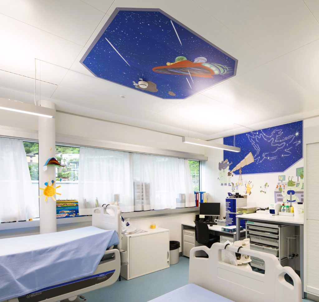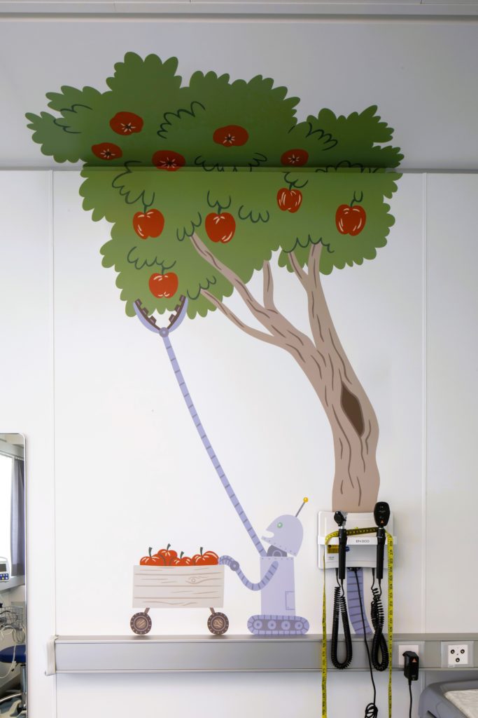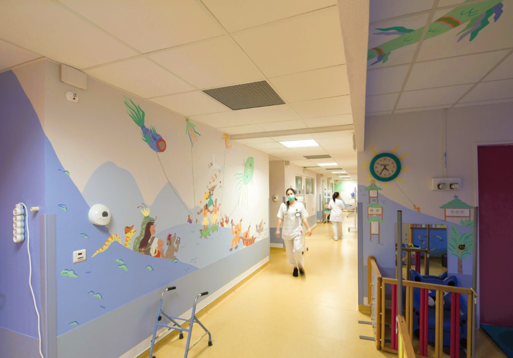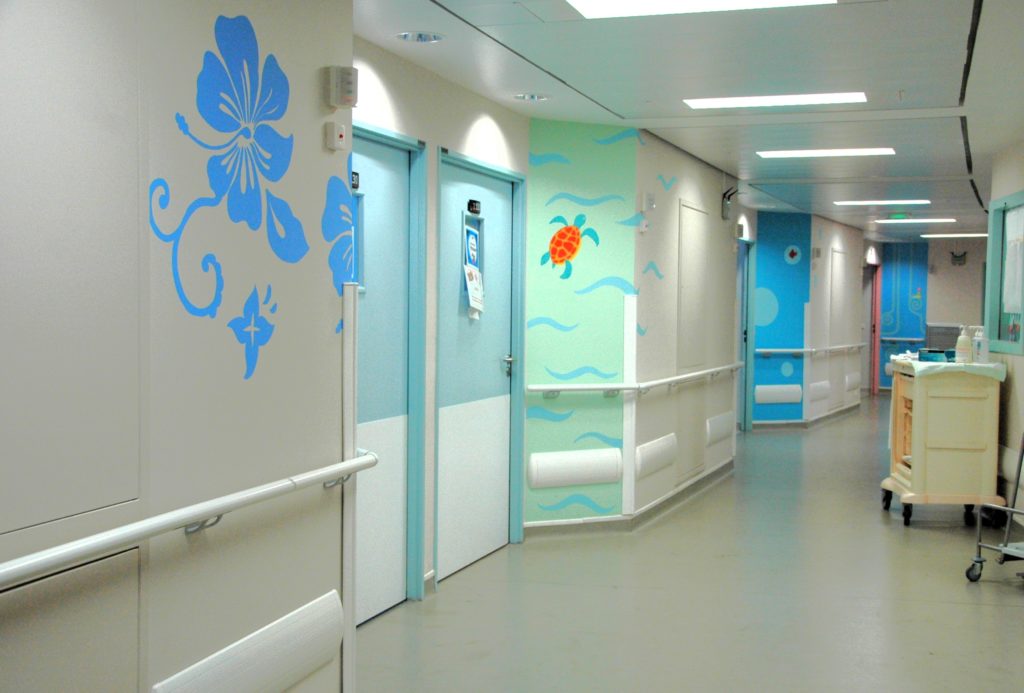 Depuis 2004, 13 projets ont vu le jour à Necker : neurochirurgie, service d’accueil pour les parents, chirurgie viscérale, pneumo-dermatologie, neuro-métabolisme, cardiologie (hospitalisation, consultations et réanimation), ORL et hospitalisation. Les exemples de nos décors thérapeutiques adaptés proviennent de la Clinique des maladies du développement, l’Unité de chirurgie orale et la réanimation cardiologique.