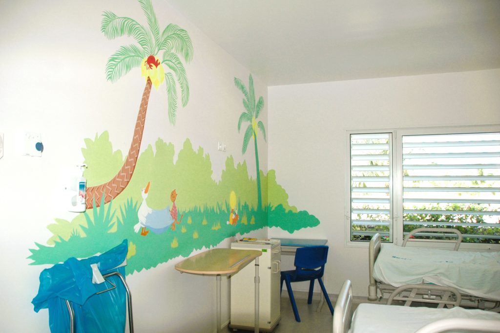 Situé à Pirae, le CHPF est un hôpital de dernière génération doté d’un plateau technique lourd, SAMU et accueil des urgences, 11 salles de bloc, réanimation lourde, plateau d’imagerie comprenant scanner, IRM et scintigraphie. Il assure une offre de soins de haute technicité en chirurgie, médecine, obstétrique et psychiatrie. Paint a Smile y a apporté de la couleur, du soutien, de l’humour et beaucoup de joie pour tous, personnel soignant, parents et jeunes patients dans le service de pédiatrie.